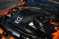 The BMW performance specialists from Geilenkirchen have taken the stock 4.0-liter V8 mill out and replaced it with the 4.4-liter V8 motor from the BMW X5/X6 M SAVs. Add in a couple of modified turbos plus a larger intercooler, titanium full exhaust with two racing catalytic converters, reinforced pistons and rods plus an X6M oil cooler and power output swells from an already potent 555 PS (408 kW / 547 hp) to 750 PS (551 kW / 740 bhp) and 910 Nm (671 lb-ft) of torque. To handle all of that torque the 6-speed M Sport automatic transmission is also adopted from the X6M in addition to an E60 M5 locking differential. With a dry weight of 1,590 kg (3505 lbs) the power to weight ratio is 2.12kg per horsepower. For comparison the Lamborghini Aventador with 700 PS (515 kW / 690 bhp) and weighing 1,575 kg achieves 2.25kg per horsepower. As a result, the 0-100 km/h arrives in 3.2 seconds and keeps on pulling beyond 350 km/h (217 mph). Naturally, with that kind of momentum generated in a 2.5 ton vehicle, upgraded braking is mandatory. Manhart has added a MOVIT brake system which includes 6 piston fixed calipers on the front with 396x34 millimeter discs and 4-piston calipers with 380x32 millimeter discs on the rear. For enhanced aerodynamics the exterior receives a complete carbon fiber kit which includes the front lower spoiler, hood, side skirts, wheel arch extensions, side skirts, luggage lid, adjustable rear wing and rear diffuser. Other parts made in carbon fiber include the engine cover and side mirrors. Made in-house, the wheels are the ultra-light Concave One "Black Edition" monoblock forged wheels in 9x20 with 255/30ZR20 Continental Sport Contact 5 high performance tires up front while 12x20-inch wheels with 325/25 tires are in the back. Suspension is capped off with threaded coilovers. Lastly, Manhart Racing also followed through with the interior by giving the MH3 V8 RS Clubsport in-house developed carbon fiber full-shell seats, but also a Wiechers roll cage was built in. A Manhart Racing display is also integrated into the middle console. It provides driving data like pending charge pressure, G-forces or measured acceleration and best Vmax values.